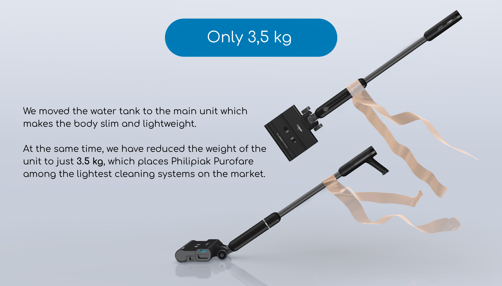 Philipiak Purofare is an exceptionally lightweight, agile, and modern cleaning device featuring a damp polymer washing roller that effectively removes both dry and wet dirt from hard surfaces.